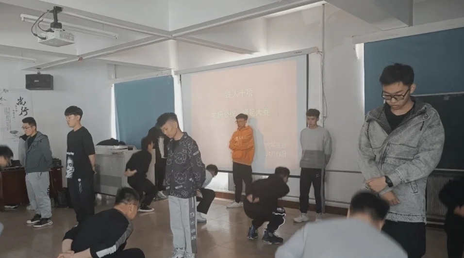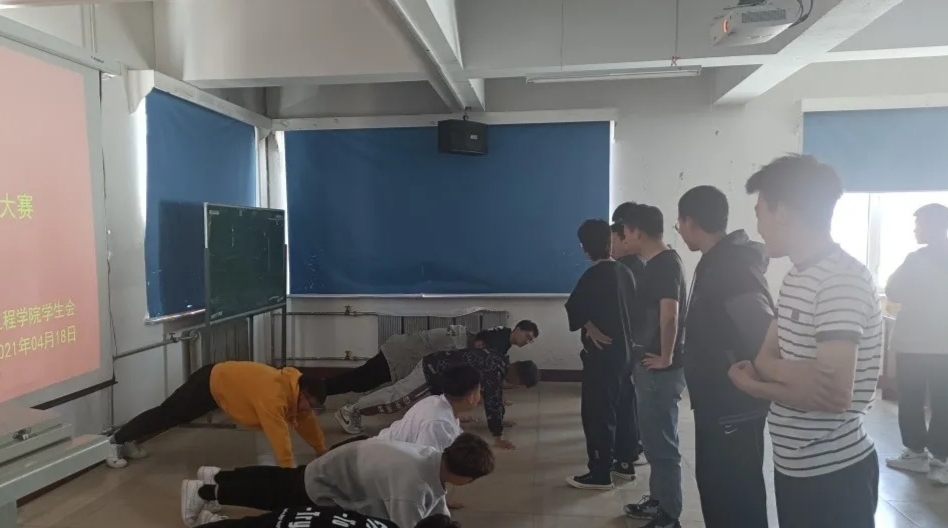 为丰富老员工的校园文化生活,增强同学们的体育锻炼的意识,提高身体素质。机电工程公司举办了“铁人十项之蹲起、俯卧撑挑战”。此次比赛在2021年4月18日午13点于知行楼422教室开展,各班同学踊跃参与报名,现场有观众为参赛选手加油助威,为本次比赛活跃增色。