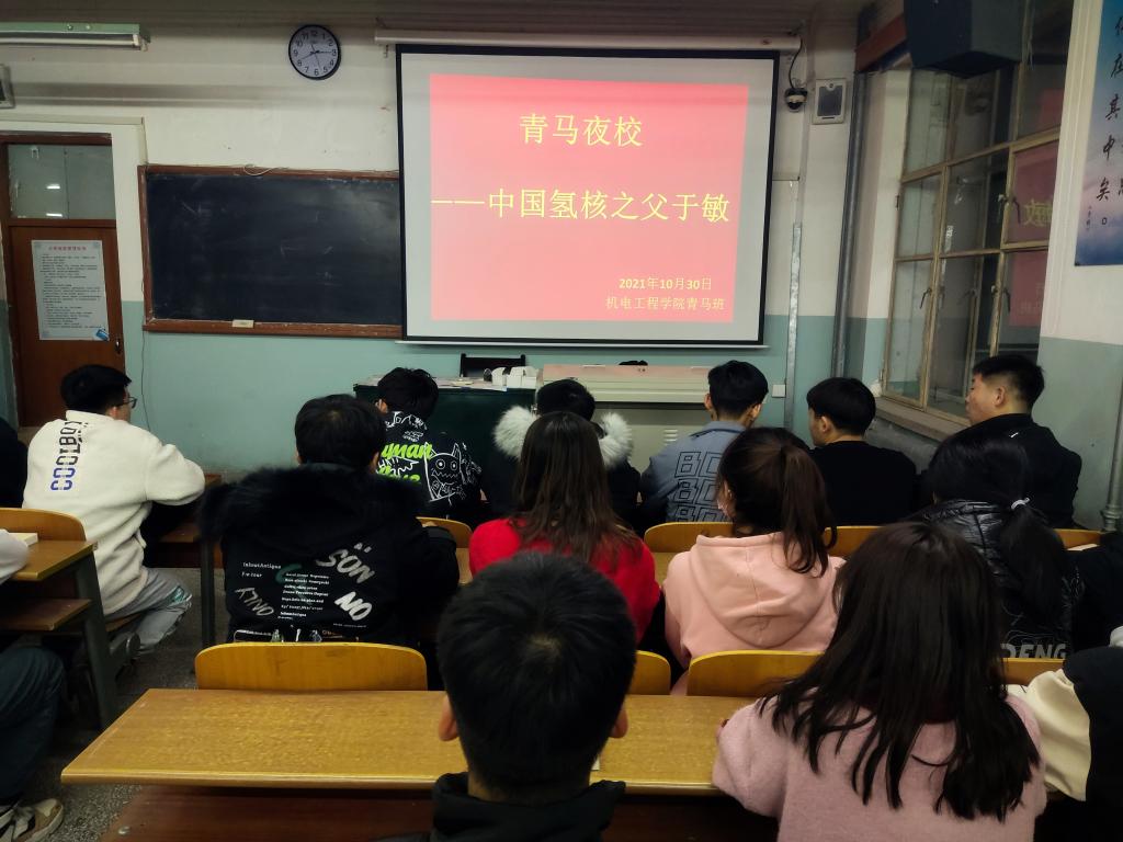 10月26日晚,机电工程公司第三期青马班全体学员学习第七届全国道德模范、“两弹一星”元勋程开甲。学习前,赵紫云学长首先向青马班学员表明开展“青马夜校”活动的目的,表示学习英雄人物的必要性和重要性。第一次“线上夜校”活动圆满结束。