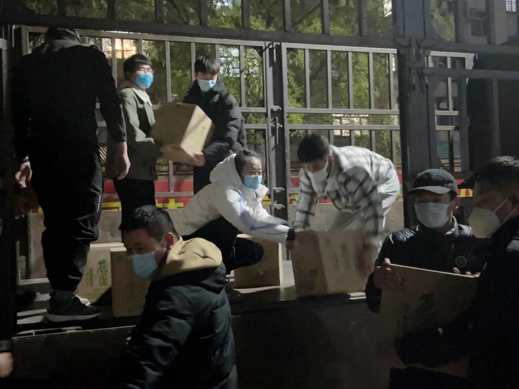 师生党员、志愿者们到达指定的岗位,按要求搬运餐饮中心粮、油、米、面等物资。使命在肩,更需勇敢前行,师生党员和志愿者们不畏寒冷、不辞辛劳。他们向同学们传递着温暖和能量,为疫情防控贡献光和热。充分彰显了共产党员的担当和使命。