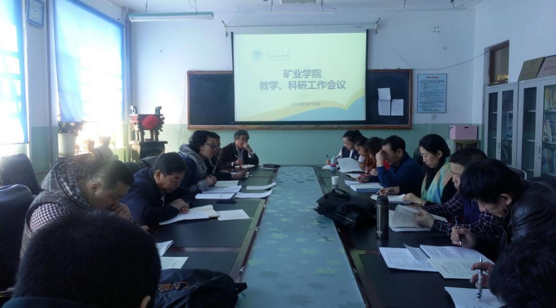 3月18日上午10点,矿业公司在工程教学楼212召开教学、科研工作会议,由卜桂玲经理主持,宋国岩副经理、王旭副书记、各系部主任、教研办及实践科全体及实验室负责人参加会议。