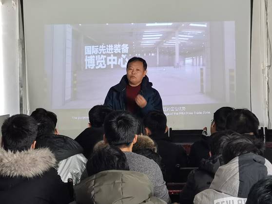 之后,中国大连国际经济技术合作集团有限公司的张经理和中国(辽宁)自由贸易试验区大连片区国际海员综合服务基地的刘主任对公司状况进行了详尽的宣讲和介绍。他们分别从企业文化、发展历程、员工岗位、待遇津贴、晋升渠道、生活娱乐保障等多方面进行了为期2个小时的宣讲,并表示非常欢迎同学们到公司工作、实习。