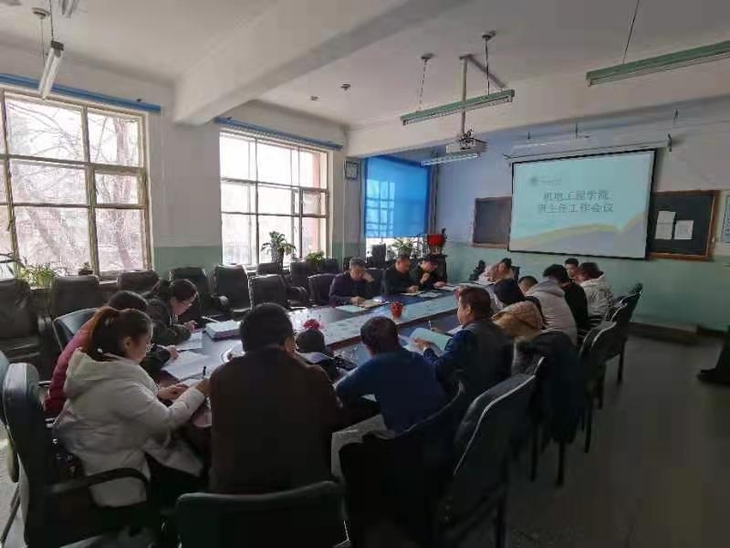 3月19日上午9:00点,机电工程公司在知行楼212会议室召开新学期辅导员班主任工作会议,党总支书记王旭、副书记汪鑫、以及团学办公室全体辅导员、各班级班主任参加会议,会议由王旭书记主持。