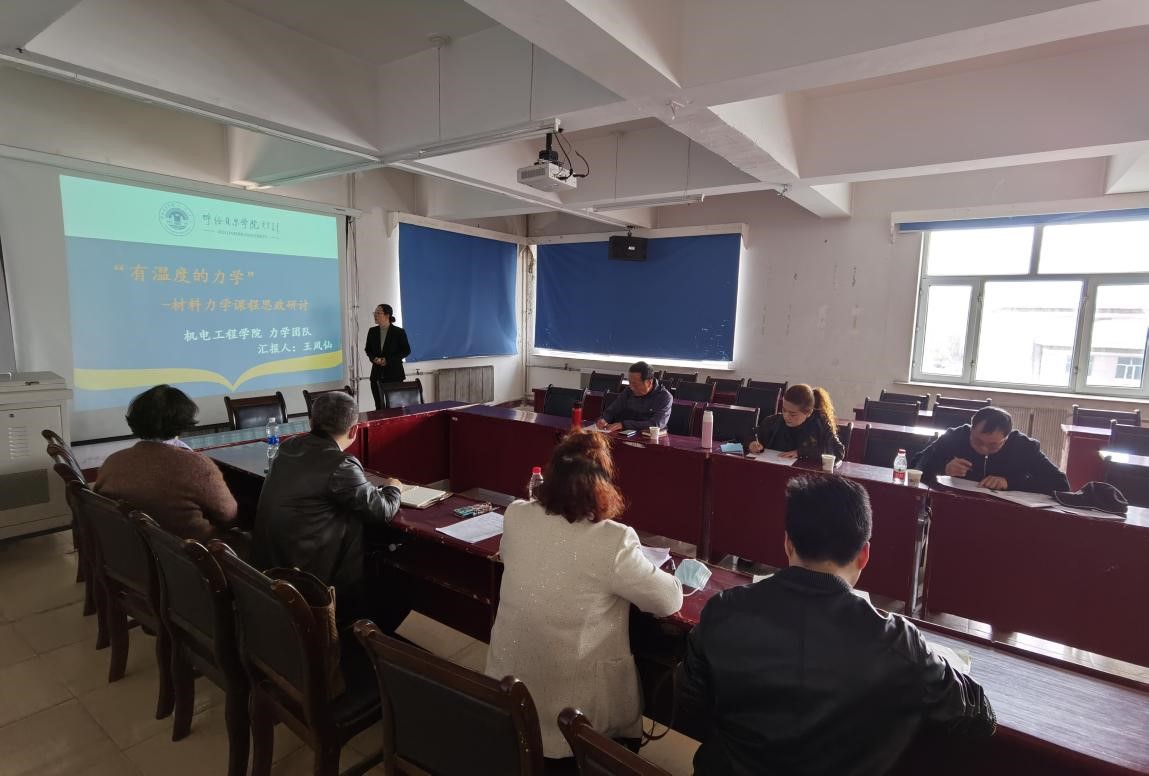 教研活动上,首先,由《材料力学》课程团队负责人王凤仙老师进行了课程思政建设经验交流。王凤仙老师首先介绍了该课程的思政目标,通过具体案例分享了课程思政建设的具体做法。随后,基础教学部教师依次结合自己的专业课程思政建设情况分享自己的做法并发表个人见解。最后,督导组三位专家对本次教研活动的开展进行了点评并针对课程思政建设提出了宝贵的意见和建议。