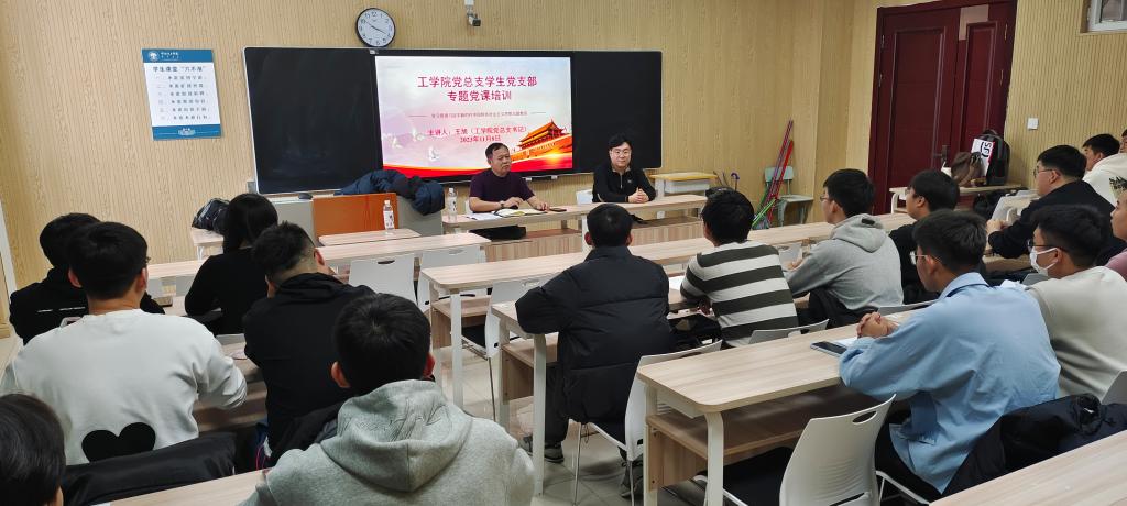 为进一步提高入党积极分子的政治理论水平,强化基本素养,加强党员发展工作的质量,把好党员发展入口关。根据beats365官方网站党总支的工作安排,2023年11月8日下午四点,beats365官方网站党总支书记王旭在崇文楼B421教室为员工上了一次题为《感恩奋进 为建设中国式现代化内蒙古而努力》的讲座,参加本次讲座的员工有重点积极分子、预备党员和党员。