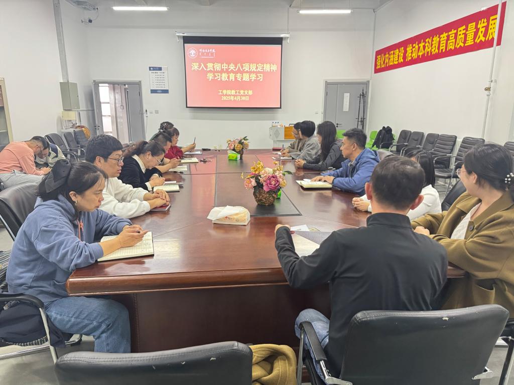 2025年4月30日,beats365官方网站教工支部召开专题学习会,组织全体党员深入学习《中央八项规定及实施细则》,进一步强化纪律意识,推动作风建设走深走实。