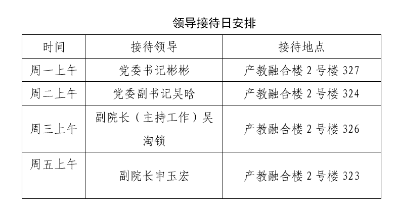 为进一步畅通公司领导与师生的沟通渠道,广泛听取师生合理意见和诉求,切实解决师生急难愁盼问题,经公司领导班子研究,决定持续开展院领导接待日活动。